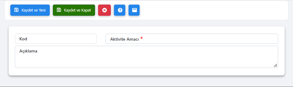 AKTİVİTE AMAÇ TANIMLAMA EKRANI