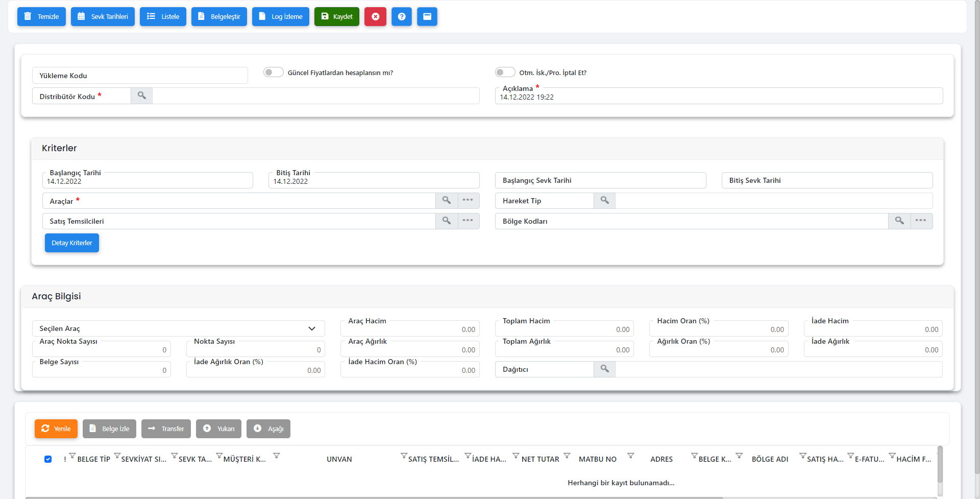 Yüklenmemiş olan İrsaliyelerin seçilenlerin araca transferi sağlanır. |