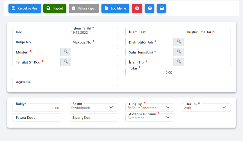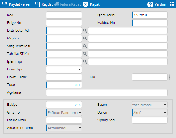 Bakiye Dengeleme Borç yapan distribütör bilgisidir. Zorunlu alandır. |
