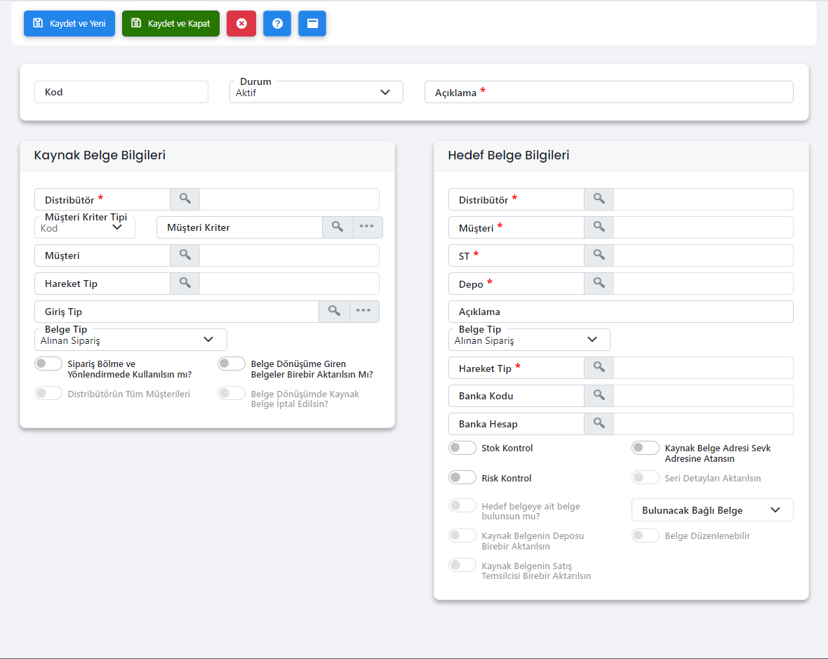 Menü Adımı : Satış ve Alış İşlemleri --> Satış İşlemleri --> Belge Dönüşüm Kriter