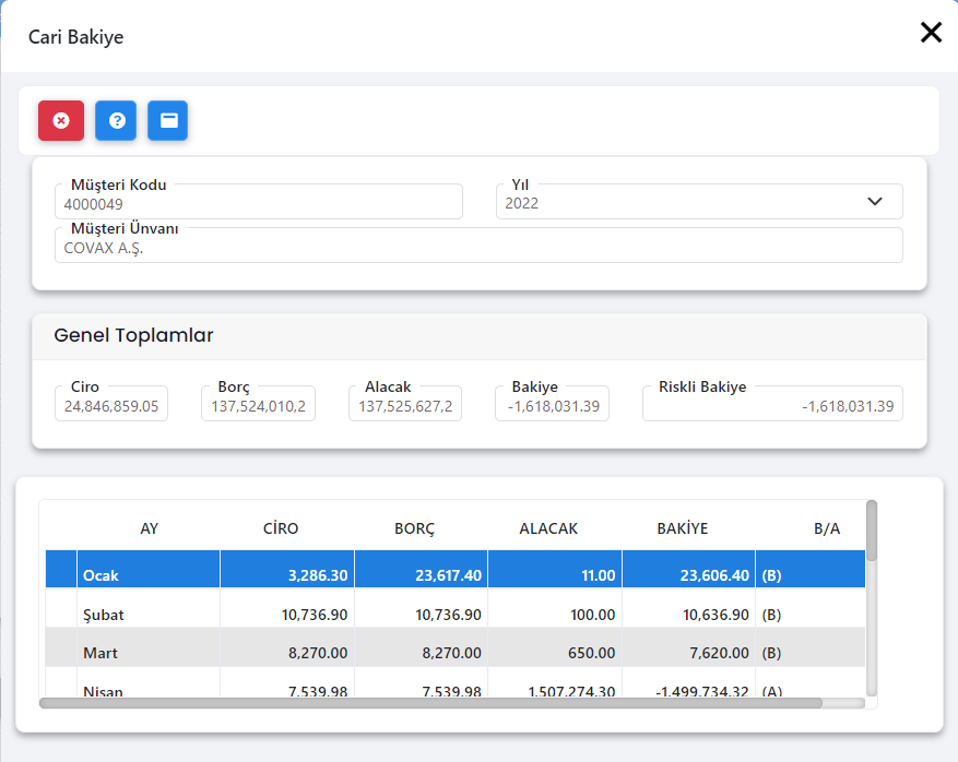 Belge üzerindeki müşterinin kodunu gösterir. |