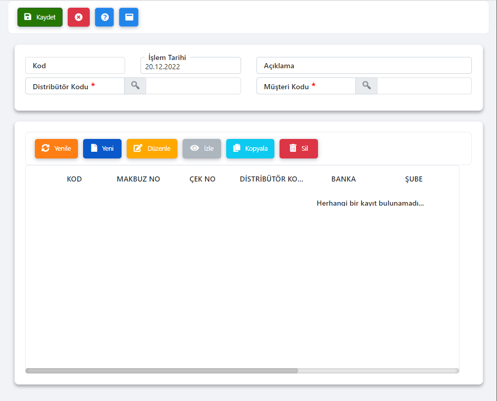 ÇEK GİRİŞ İŞLEMLERİ EKRANI