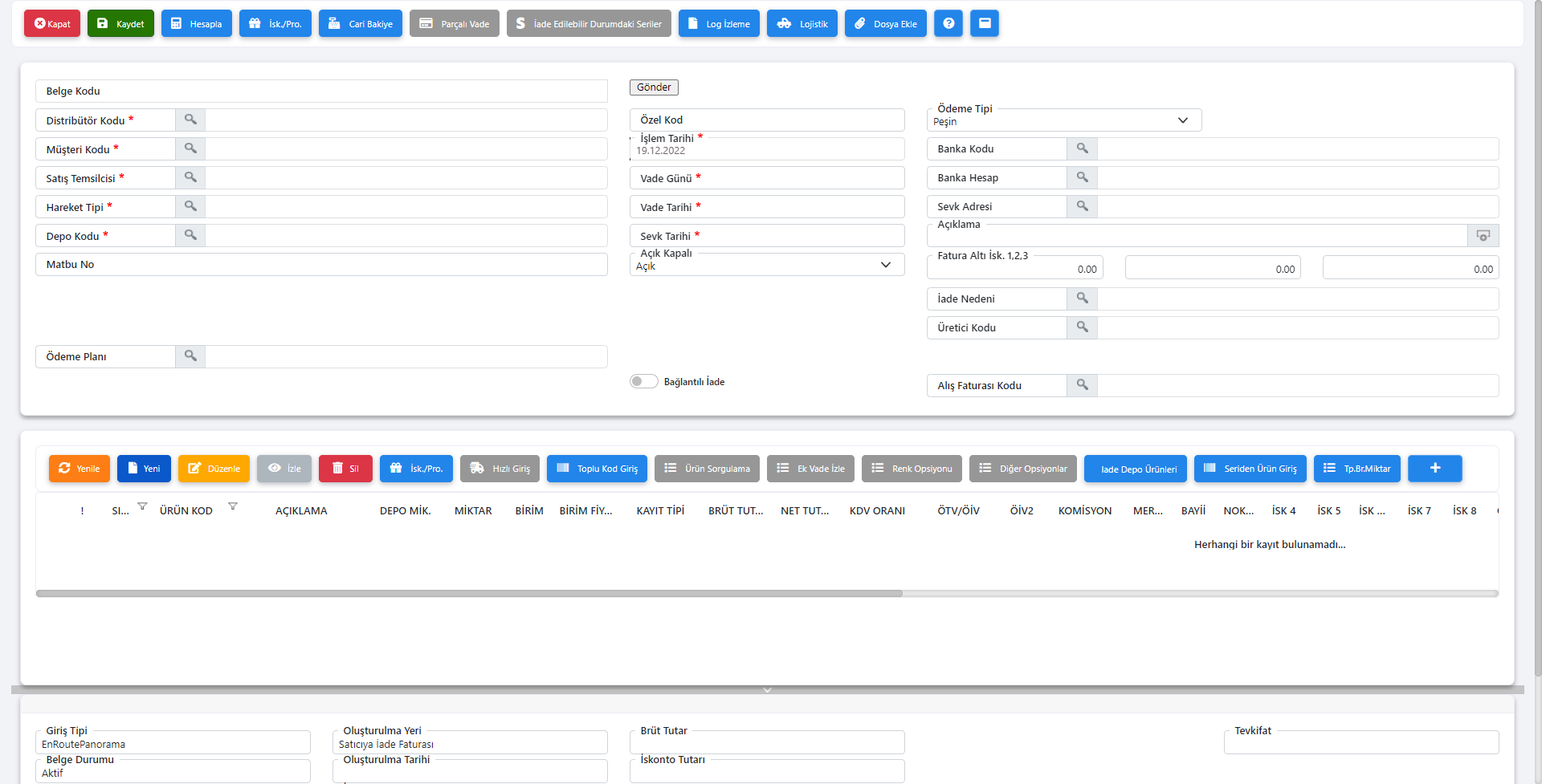 Menü Adımı : Satış ve Alış İşlemleri --> Satıcıya İade İşlemleri --> İade Faturası