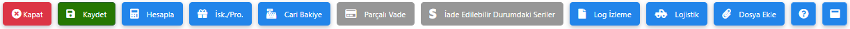 İsteğe bağlı olarak dip toplamda yapılacak iskontoların girildiği alanlardır. Buraya girilen iskontolar satırlara dağıtılabilir. |
