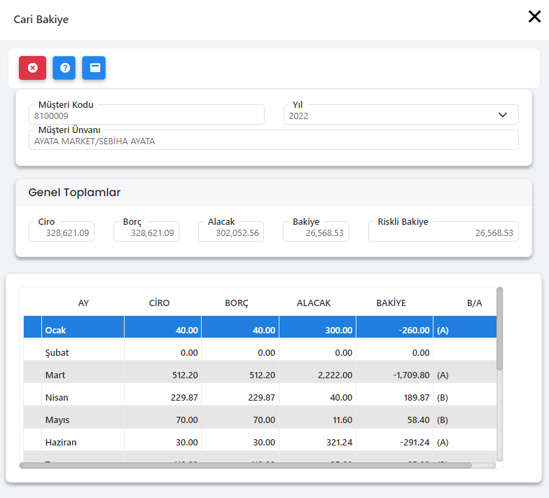 Belge üzerindeki müşterinin kodunu gösterir. |