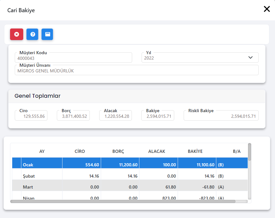 Belge üzerindeki müşterinin kodunu gösterir. |