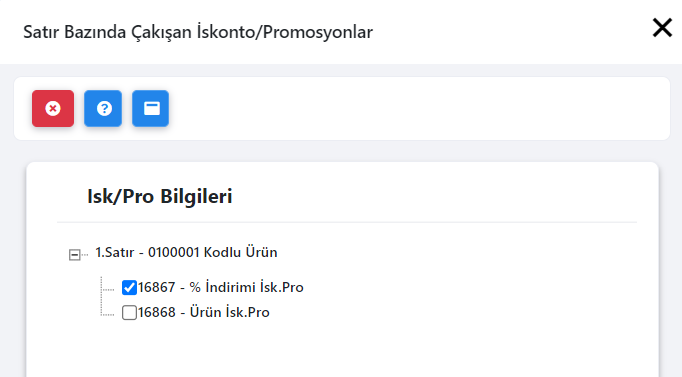 Belge detayındaki ürünün iskonto bilgisidir. Oran ya da tutar değeri olabilir. |