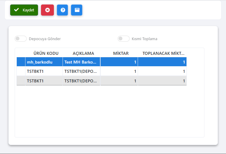 Kod değeri ve miktar değerleri girilen ürünü detaya eklemek İçin Ekle/ Çıkar Butonuna tıklanır. |