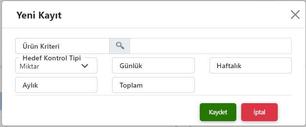 Hedef tip miktar ya da tutar şeklinde seçilebilir. Miktar seçildiği zaman belirlenen ürün miktarı üzerinden limitleme yapılır. Tutar seçildiği zaman belirlenen ürünün tutarı üzerinden limitleme yapılır. |