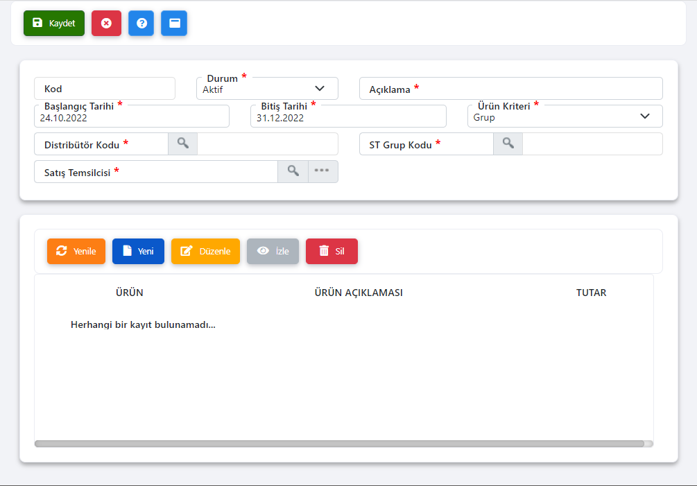 Ürünün kriteri seçilir, “Grup”, “Ek Grup”, “Dinamik Grup” değerlerini alır. |