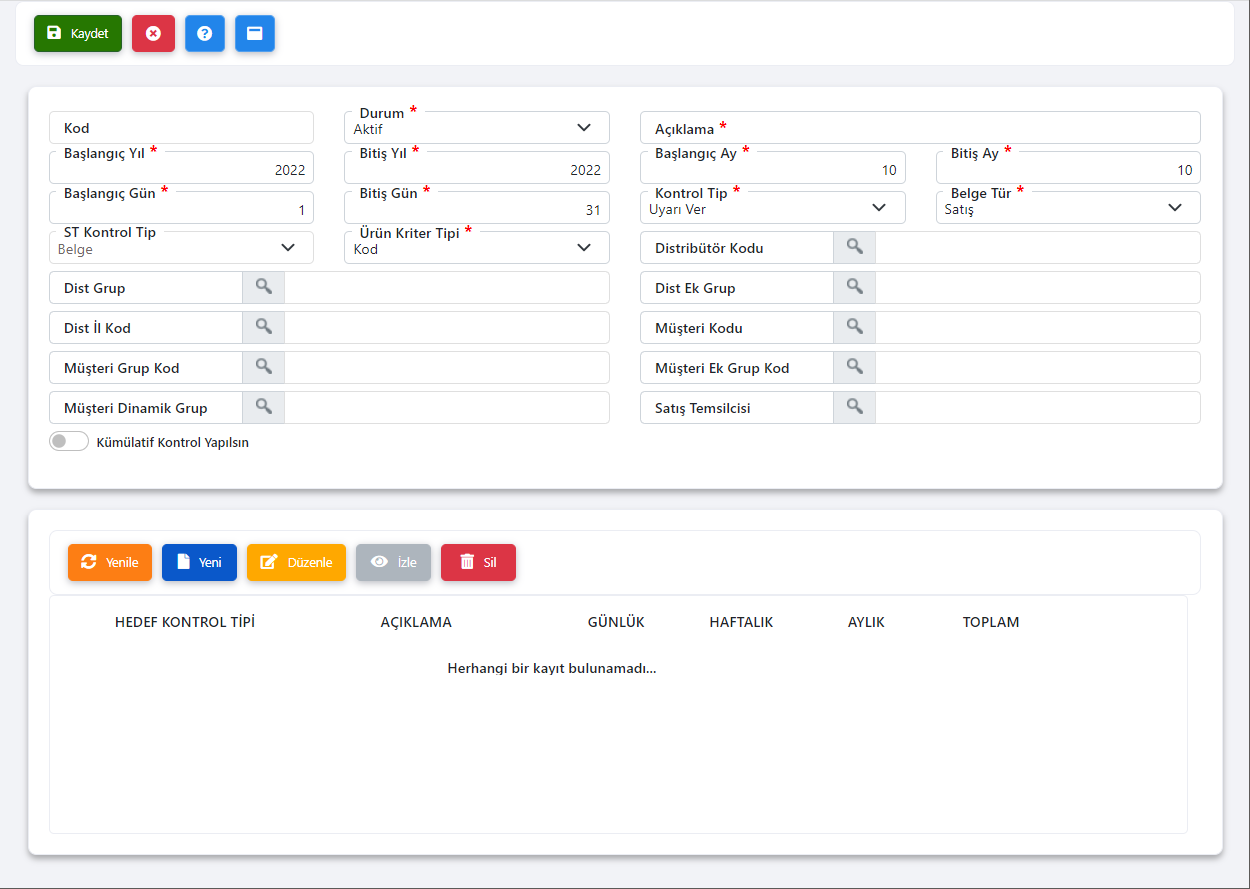 Tanımlanan Kota Müşteri ayarlarının hangi yılda geçerli olacağı bilgisi girilir. |