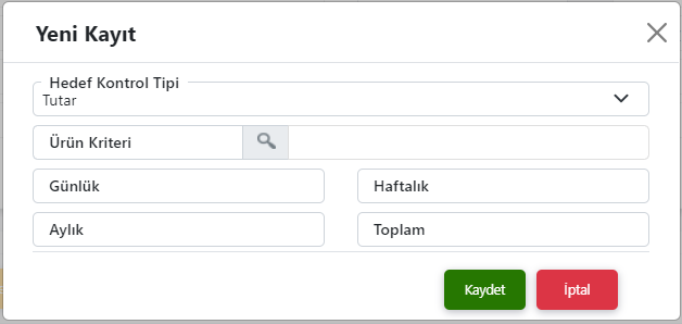 Hedef tip miktar ya da tutar şeklinde seçilebilir. Miktar seçildiği zaman belirlenen ürün miktarı üzerinden limitleme yapılır. Tutar seçildiği zaman belirlenen ürünün tutarı üzerinden limitleme yapılır. |