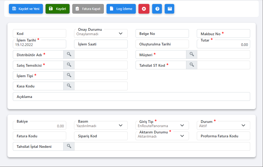 Nakit ödeme kaydının fatura kodu bilgisidir. Girilen faturaya karşılık oluşan fatura takip kodu bilgisidir. |