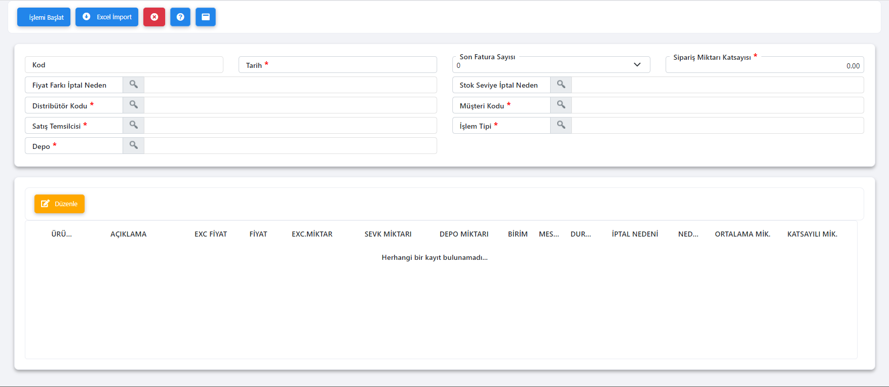 Detay alanında listelenen ve seçimi yapılan onaylı siparişi düzenleme modunda açar. |
