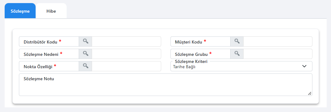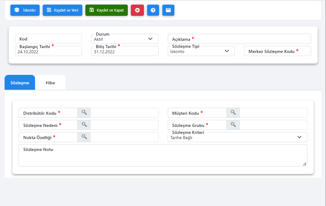 Menü Adımı : Satış ve Pazarlama Kriteri --> Satış Kriterleri --> Sözleşme