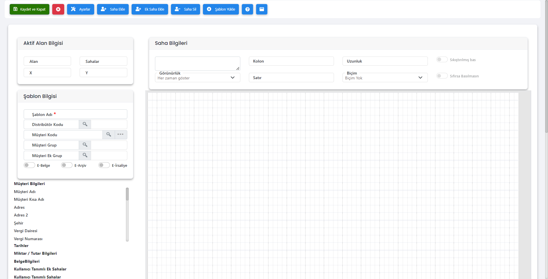 Programda yazmasını istediğimiz sabit değerler varsa (çizgi, açıklama vs.), Saha ekle butonundan eklenir. |