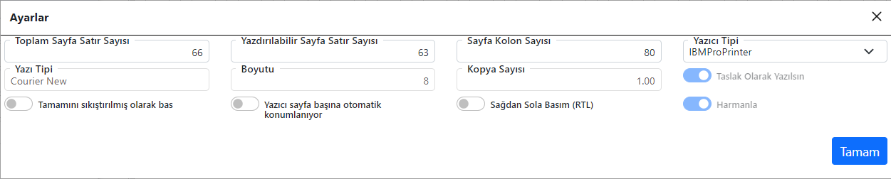 Yazıcı tipi Windows Printing seçili ise aktif olur ve Windows’un yazım font değerinin girildiği kısımdır. |