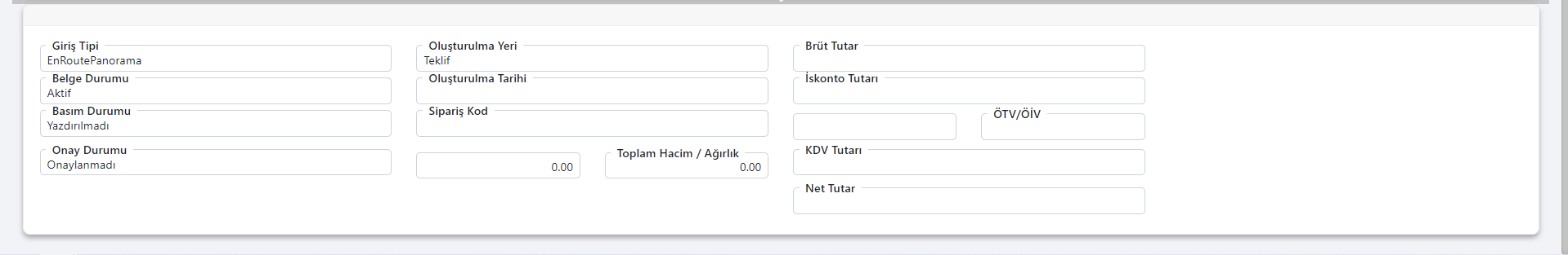 Ekran Tanımı : Sipariş teklif ekranıdır.
