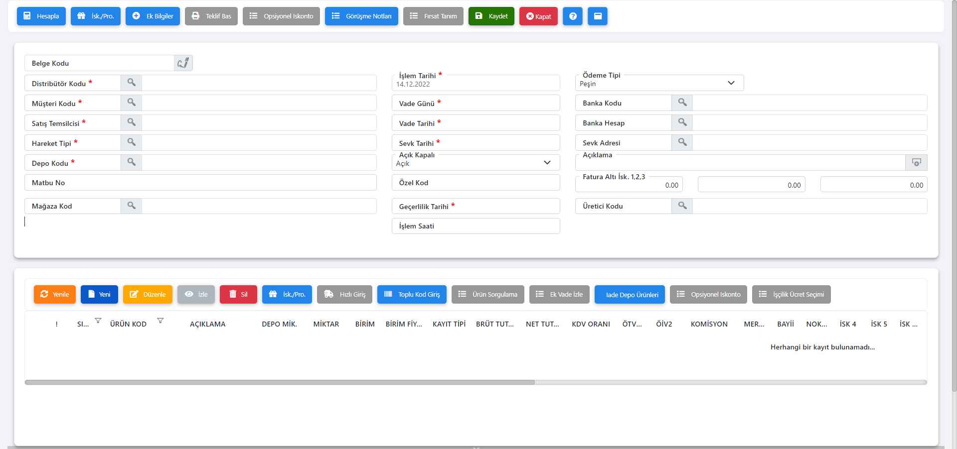 Menü Adımı : Satış ve Alış İşlemleri --> Satış İşlemleri --> Teklif