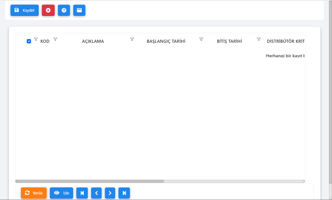 Ekran Tanımı : Toplu müşteriye özel net fiyat iptal bilgilerinin tanımlandığı ekrandır.