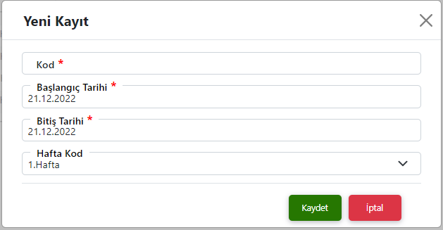 Tanımı yapılacak haftanın başlangıç tarihinin girildiği alandır. |